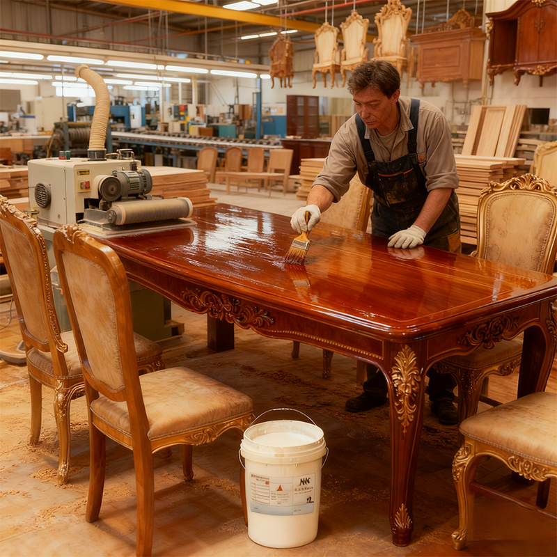 Прозрачный лак для древесины "Кэцзя Хэчуан" KJHC-019 изготовлен на основе модифицированной полиуретановой смолы с добавлением выравнивающих агентов, противоцарапающих добавок и УФ-абсорберов, выполнен по высокопрозрачной рецептуре. Механизм действия заключается в формировании прозрачного покрытия, которое полностью сохраняет естественную текстуру древесины, в то время как сшитая структура смолы усиливает износостойкость и устойчивость к загрязнениям, а УФ-абсорберы предотвращают изменение цвета и старение древесины, обеспечивая двойной эффект "защита + подчеркивание текстуры". Продукт подходит для отделки поверхностей деревянных изделий: мебель из массива, паркет, деревянные двери, деревянные изделия ручной работы. Адаптирован для внутренних сухих помещений, может наноситься при комнатной температуре, демонстрирует хорошую совместимость с различными породами древесины, включая сосну, дуб, красное дерево. По техническим показателям: покрытие обладает высокой прозрачностью, глянец регулируется (матовый, полуматовый, глянцевый), твердость ≥2H, ударная прочность ≥30 см, адгезия соответствует 0 классу, устойчивость к царапинам (500 г) ≥2H. Обладает превосходной стойкостью к загрязнениям, устойчив к воздействию повседневных веществ: чая, фруктового сока, масляных пятен; легко очищается, длительно сохраняет естественную текстуру деревянных изделий.